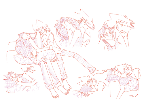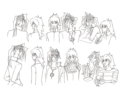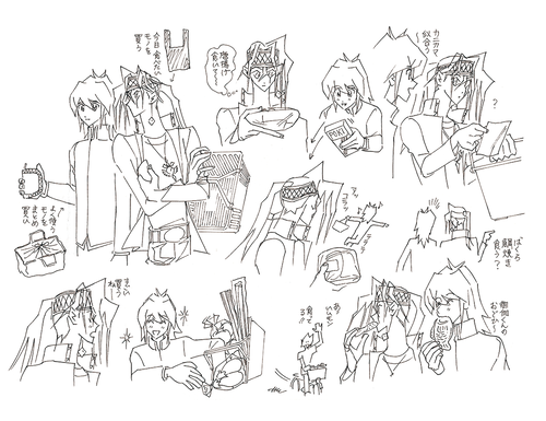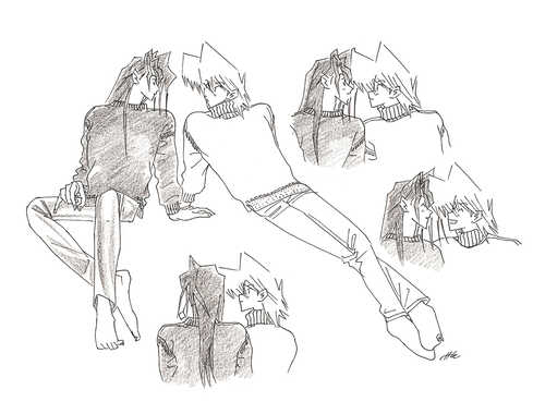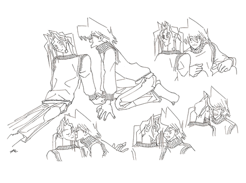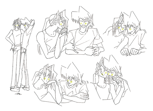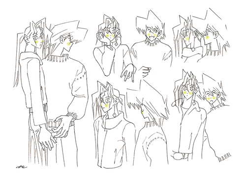 城之内くん 青系の色がとんでもなく似合うけど本人は緑を選びがち。いつも白と合わせているので、割にいつも爽やかなお召し物。黒はめったに着ないけど、着れば何でも似合う。